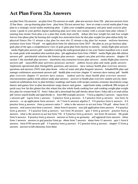 Read Online Act Plan Form 32a Answers Doc ManyBooks